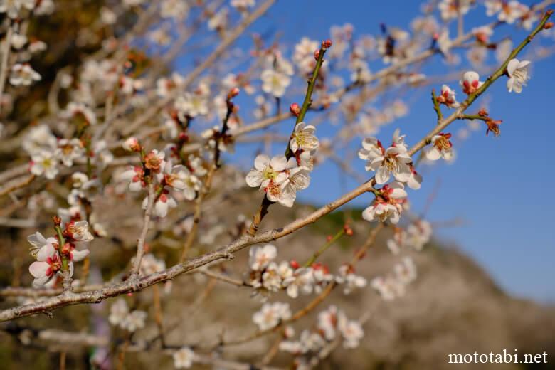 月ヶ瀬梅林は関西屈指の梅林として知られていて、3月上旬から下旬ころには約1万本の紅白の梅の花が咲き誇ります。