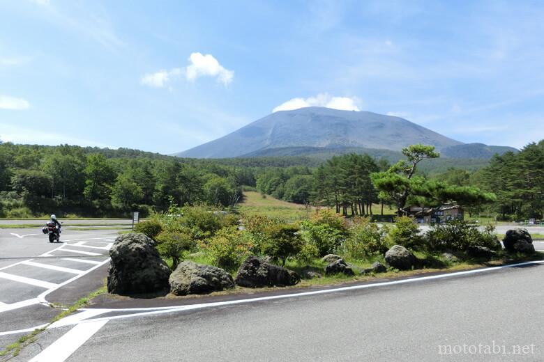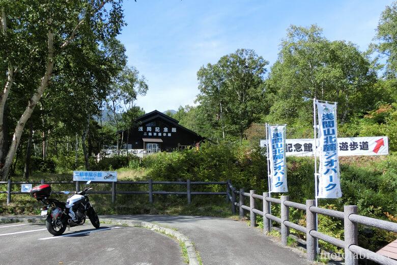 1783年に浅間山が噴火して流れた溶岩がみれる場所です。キャンプ場から1kmで歩いても行けそうだけど、バイクで行きました。