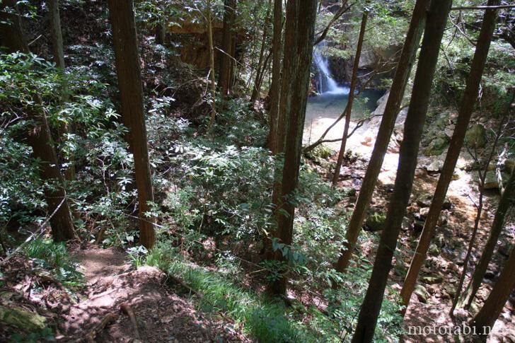 5分くらいで滝の場所につけます。急傾斜なので滑りそうになります。滑りにくい靴をはいていくことをおすすめします。
