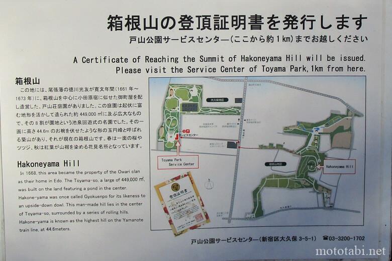 高さはわずか44.6メートルの「箱根山」に登頂すると、登頂証明書を発行してくれると案内がありました。