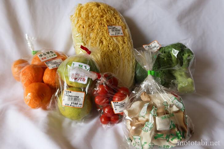 産直市場よってって大和郡山店により、野菜類を購入しました。