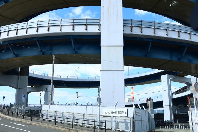 大阪市西成区側のらせんの間には、「千本松大橋自転車保管所」があります。