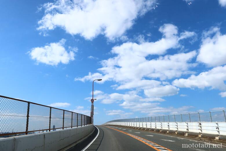 橋の上からの景色は絶景です。残念ながら、車やバイク(タンデムで後)からうまく撮影できません。この橋は歩いて渡ることもできるので、機会があったら歩いて撮影したい。