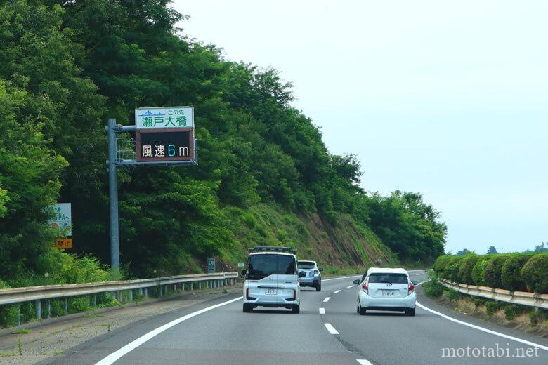 私は瀬戸大橋を渡る前に、本四高速の風情報を確認していました。それでも数時間後に風が強ってしまったこともあります。
