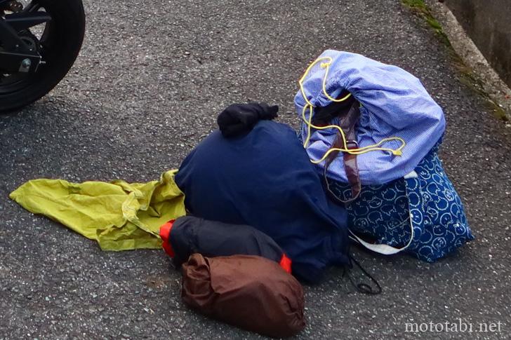 タンクバックには、レインコート類を入れました。さらにリュックサックを背負いました。