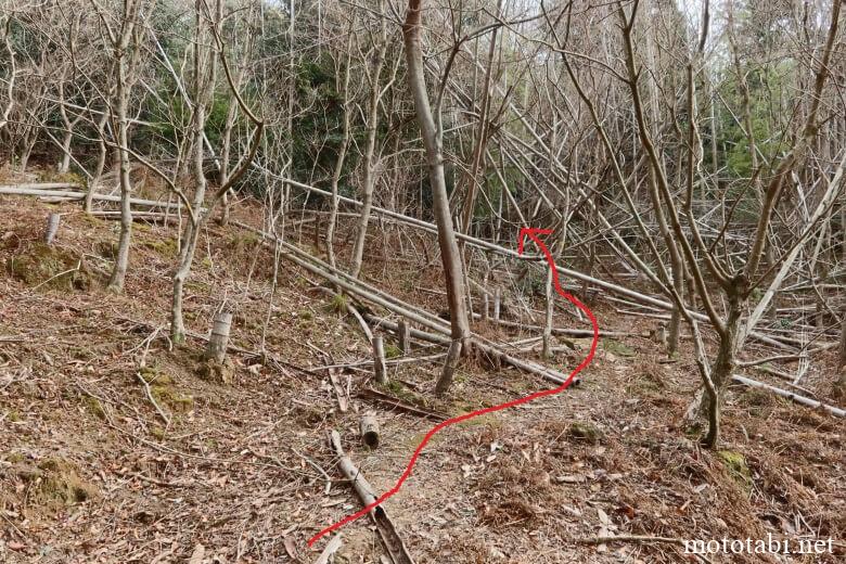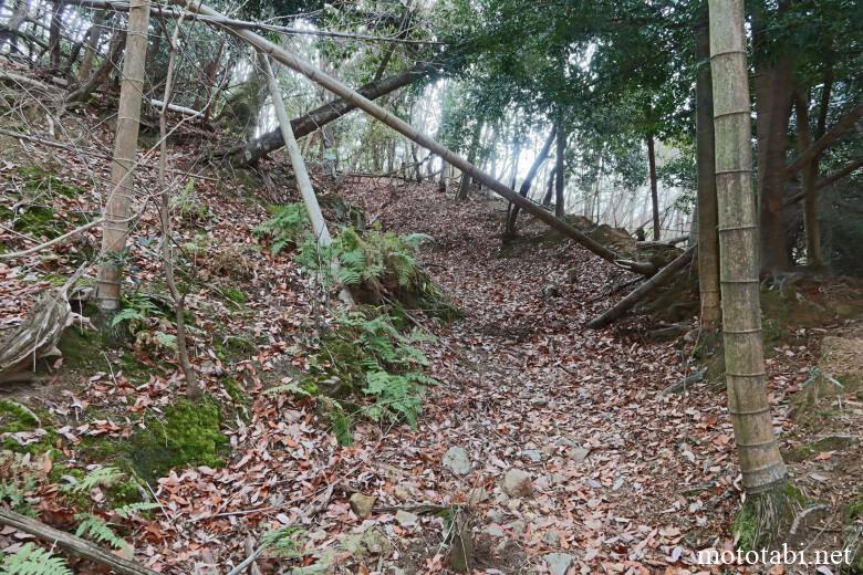 登山道は整備されておりません。歩いて行くと途中で進む方向に迷うことが何度かありました。ここから近くにある若草山の方が、登山道が整備されています。
