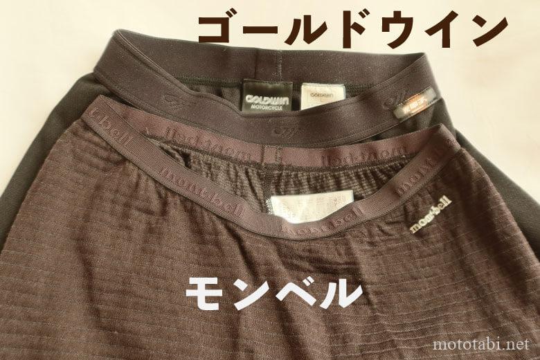 モンベルのタイツが一番はいているため、伸びているかもしれませんが、ゴールドウィンと比べると少し小さい。