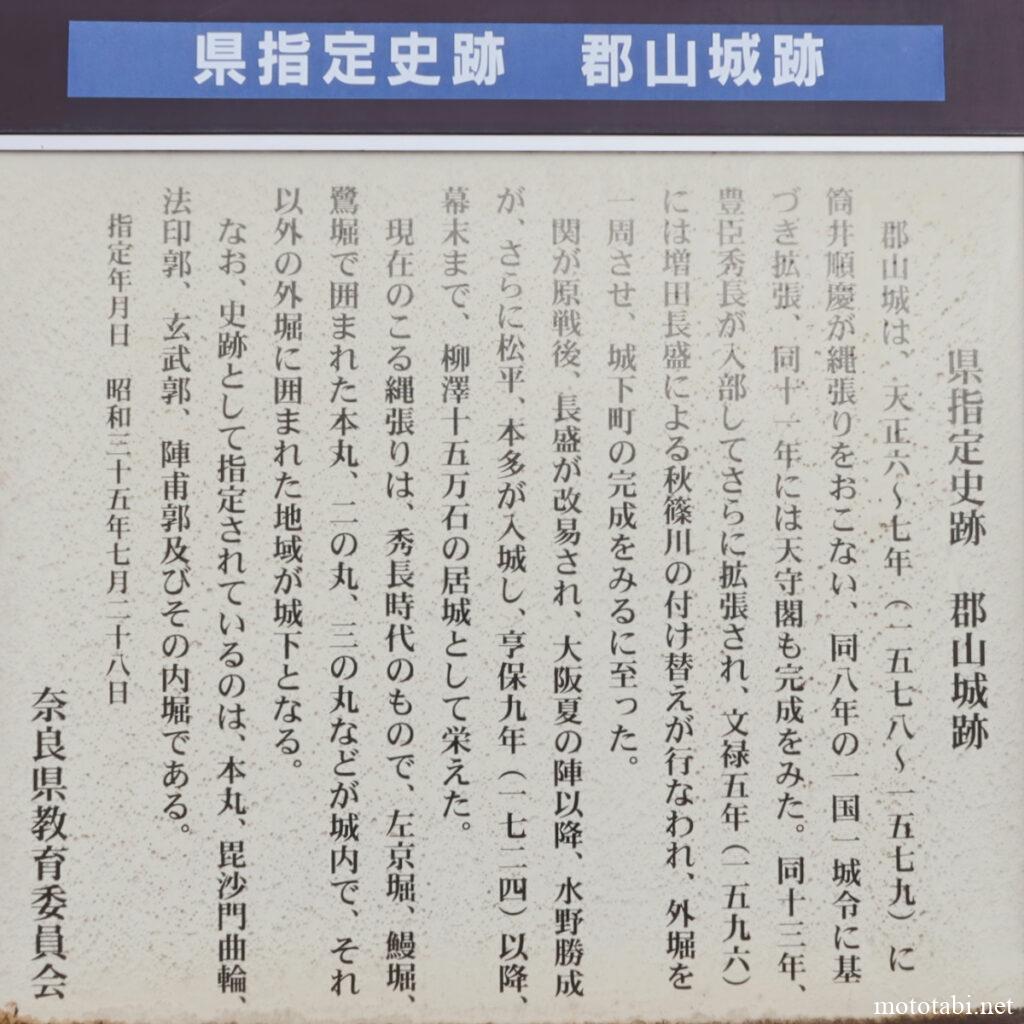 郡山城跡は国史跡で、「続日本100名城」そして「日本さくら名所100選」に選定されています。
